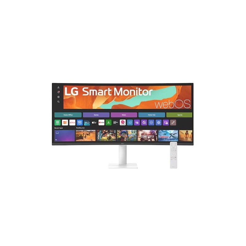 LG Smart Monitor 34' WQHD Curved display with 3440x1440 resolution, sRGB 99%, webOS, AirPlay 2, 2x7W speakers, 100Hz refresh rate & Bluetooth