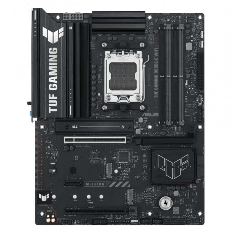ASUS TUF GAMING B650E-E WIFI takes all the essential elements of the latest AM5 Socket for AMD Ryzen™ Desktop Processors and combines them with game-ready features and proven durability. Engineered with military-grade components, an upgraded power solution and a comprehensive cooling system, this motherboard goes beyond expectations with rock-solid and stable performance for marathon gaming. TUF GAMING motherboards also undergo rigorous endurance testing to ensure that they can handle conditions where others may fail. Aesthetically, this model incorporates rugged off-black and geometric design elements to reflect the dependability and stability that defines the TUF GAMING series. This platform delivers the power and connectivity that advanced AI PC applications demand.