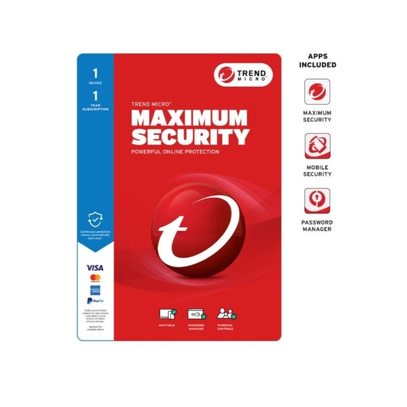 Trend Micro Maximum Security (1 Device) 1 Year Retail Mini Box Auto Renew