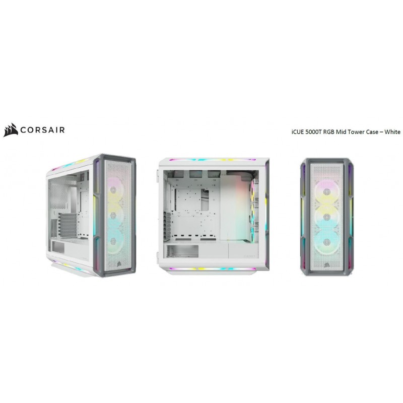 The CORSAIR iCUE 5000T RGB’s contoured curves and 208 individually addressable RGB LEDs make your system unmistakable, while removable airflow front and roof panels, CORSAIR RapidRoute cable management, and a spacious interior make it easy to build. Three LL120 RGB PWM fans deliver immediate cooling and additional lighting, with an included iCUE COMMANDER CORE XT for smart control.