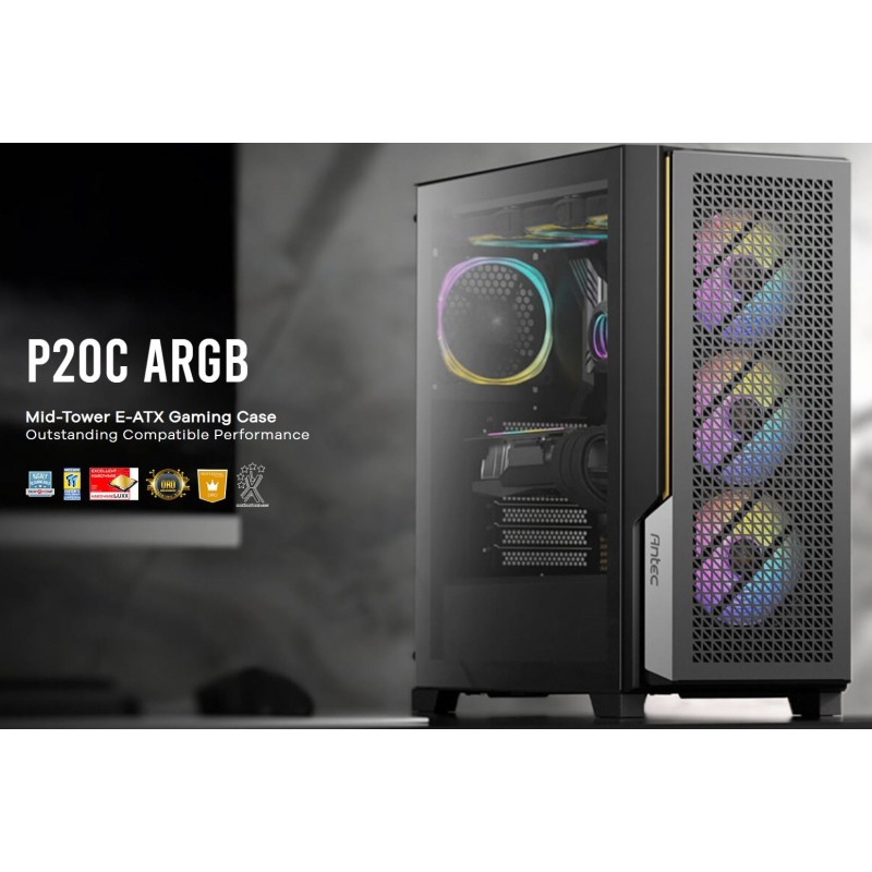 Antec P20C ARGB, ATX, E-ATX, High Airflow, USB-C, Cable management, 4x HDD/SSD , 375mm GPU, 170mm CPU, 3x ARGB PWM 12CM,Fan C