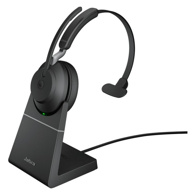 The Jabra Evolve2 65 MS Teams Wireless Mono Headset with Link 380 USB-C Bluetooth adapter and charging stand is a high-quality wireless headset that keeps you agile at work. Never worry about missing a call, and move freely while on a call with its superior wireless audio performance. It comes with a USB-A charging stand for hassle-free charging.
