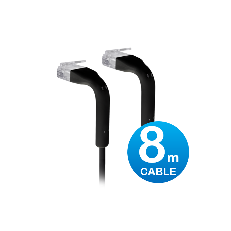 UniFi Patch Cable 8m Black, Both End Bendable to 90 Degree, RJ45 Ethernet Cable, Cat6, Ultra-Thin 3mm Diameter U-Cable-Patch-