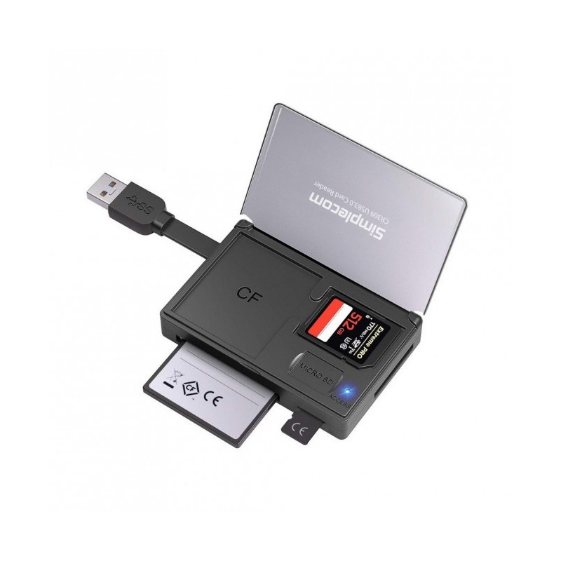 Simplecom CR309 3-Slot SuperSpeed USB 3.0 Card Reader with Card Storage Case