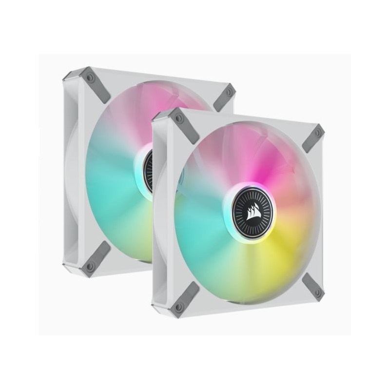The CORSAIR iCUE ML140 RGB ELITE Premium 140mm PWM Magnetic Levitation Dual Fan Kit - White Frame boasts CORSAIR AirGuide technology and magnetic levitation bearings for low noise and high cooling performance.