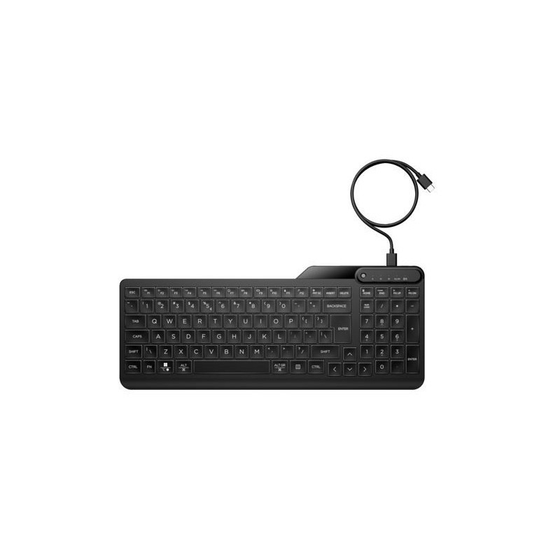 HP 405 Multi-Device Backlit Wired Keyboard Removable USB-C® cable with USB-A Slim Full-size Numpad LED light Multi-OS compatible 150cm Cable Black