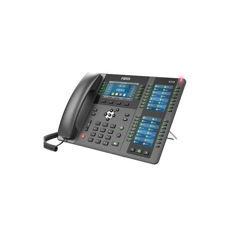 The Fanvil X210 Enterprise IP Phone is an elegant enterprise phone for the executive user. The X210 features 2 side color displays both in vibrant color providing the most work efficiency. This high-level phone also features Gigabit Ethernet with PoE support, as well as support for EHS, built-in Bluetooth and Wi-Fi through a separate dongle.