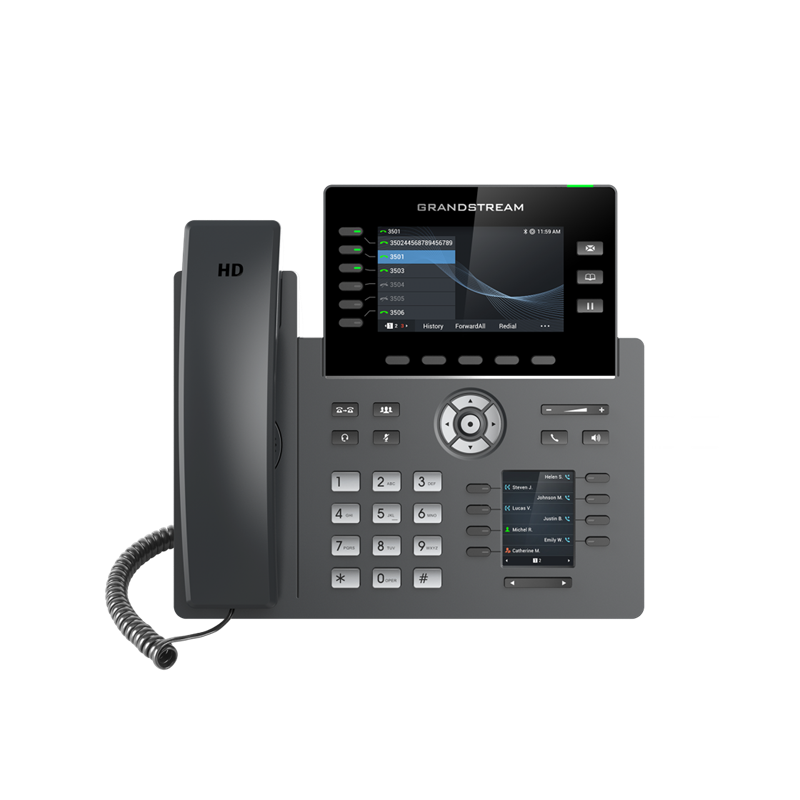 The GRP2616 is a high-end carrier-grade IP phone designed with zero-touch provisioning for mass deployment and easy management. It supports 6 lines and 6 SIP accounts while featuring a sleek design and a suite of next-generation features including integrated Wi-Fi, Bluetooth support, 48 virtual multi-purpose keys (MPKs), dual Gigabit ports and more. This device features a 4.3 inch color LCD screen with swappable face plates to allow for easy logo customization and an additional 2.4 inch display screen. The GRP series includes carrier-grade security features to provide enterprise-level security, including secure boot, dual firmware images and encrypted data storage. For cloud provisioning and centralized management, the GRP2616 is supported by Grandstream’s Device Management System (GDMS), which provides a centralized interface to configure, provision, manage and monitor deployments of Grandstream endpoints. Built for the needs of busy desktop workers and designed for easy deployment by enterprises, service providers and other high-volume markets, the GRP2616 offers an easy-to-use and easy-to-deploy voice platform.