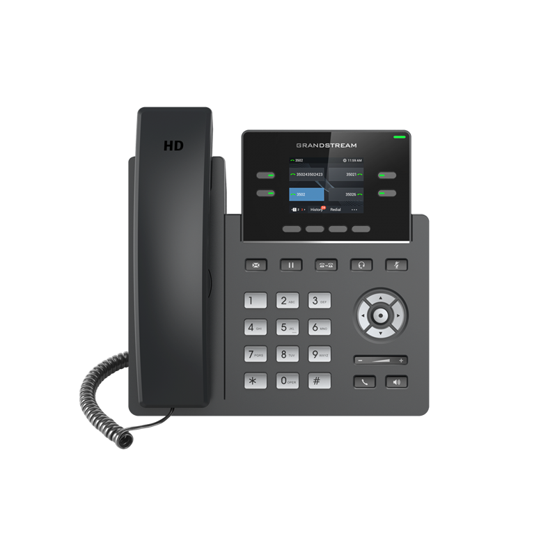 The GRP2612 is a powerful 4-line carrier-grade IP phone designed with zero-touch provisioning for mass deployment and easy management. It features a sleek design and a suite of next-generation features, 16 virtual multi-purpose keys (VPKs), a color LCD with swappable face plates for easy logo customization and more. The GRP series includes carrier-grade security features to provide enterprise-level security, including secure boot, dual firmware images and encrypted data storage. For cloud provisioning and centralized management, the GRP2612 is supported by Grandstream’s Device Management System (GDMS), which provides a centralized interface to configure, provision, manage and monitor deployments of Grandstream endpoints. Built for the needs of desktop workers and designed for easy deployment by enterprises, service providers and other high-volume markets, the GRP2612 offers an easy-to-use and easy-todeploy voice endpoint.