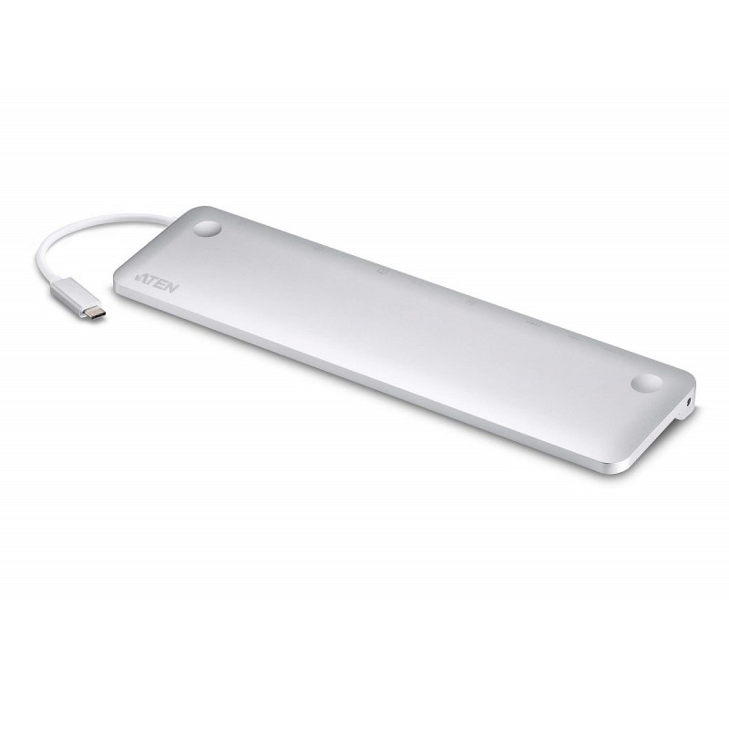Aten is a reputable conglomerate that provides a wide range of communication, data transfer, docking and other accessories for computing devices. Its range of docking stations for laptops is unique due to the sleek designs used and the helpful combinations of ports and output types available. Aten's USB-C Multiport Dual View Dock with Power Pass is another great product released by this innovative company. It has three video output types (HDMI, DisplayPort and VGA) as well as a combination of other useful ports (USB 3.1, SD/MMC/MicroSD, Ethernet and audio). The ultra-sleek ATEN USB-C Multiport Dock with Power Pass-Through is a one-step total upgrade for your laptop that provides all the extra expansion you need. Simply use one cable to add up to 10 devices with power delivery pass-through to boost your productivity with extra HDMI, DisplayPort, VGA, USB3.1 Gen1, SD/MMC/MicroSD, Ethernet and audio connections. Stylish and Smart Design With a sleek, ergonomic design, the docking station's aluminium enclosure makes it lightweight yet rugged, meaning you can place your laptop directly on top of the docking station to save space, type comfortably and keep your laptop cool. One Cable for Power, Video, Audio, Data Use the single USB-C cable to charge, transfer data and expand your workstation with up to 10 ports. The docking station not only offers the flexibility of three video interface options (HDMI, DisplayPort and VGA), but also it is equipped with readers for SD/MMC/MicroSD memory cards. You can connect a headset/microphone or an array of USB Type-A peripherals, such as external hard drives, or a full-sized keyboard and mouse, to complete your workstation. To keep charging all your power-hungry devices and peripherals while working, the dock provides 60W of power delivery pass-through via your laptop's USB-C AC power adapter. Stunning 4K or Dual HD Monitor Setup This versatile dock allows to extend your MacBook or Chromebook to an additional monitor and enjoy