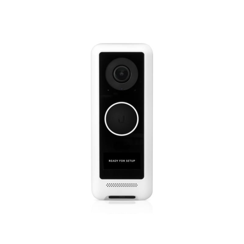 Description:WiFi-connected doorbell with an integrated night vision camera and porch light. Capture video and communicate with visitors at your front door with the UniFi Protect G4 2MP Doorbell from Ubiquiti Networks. This Wi-Fi device uses a CMOS sensor to capture 1600 x 1200 resolution video at 30 fps. It features a fixed lens that delivers a 155° diagonal field of view, a PIR sensor for motion detection, and a built-in speaker and microphone for two-way audio communication.