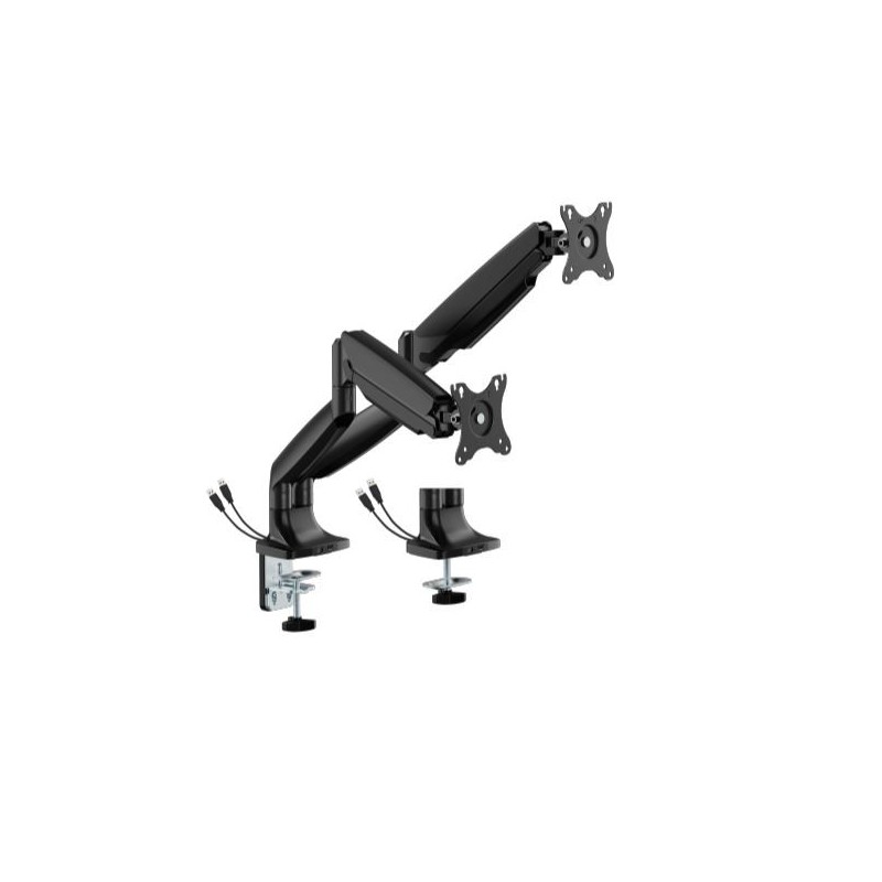 Brateck LDT82-C024UC DUAL SCREEN HEAVY-DUTY GAS SPRING MONITOR ARM WITH USB PORTS For most 17'~35' Monitors, Matte Black(New)