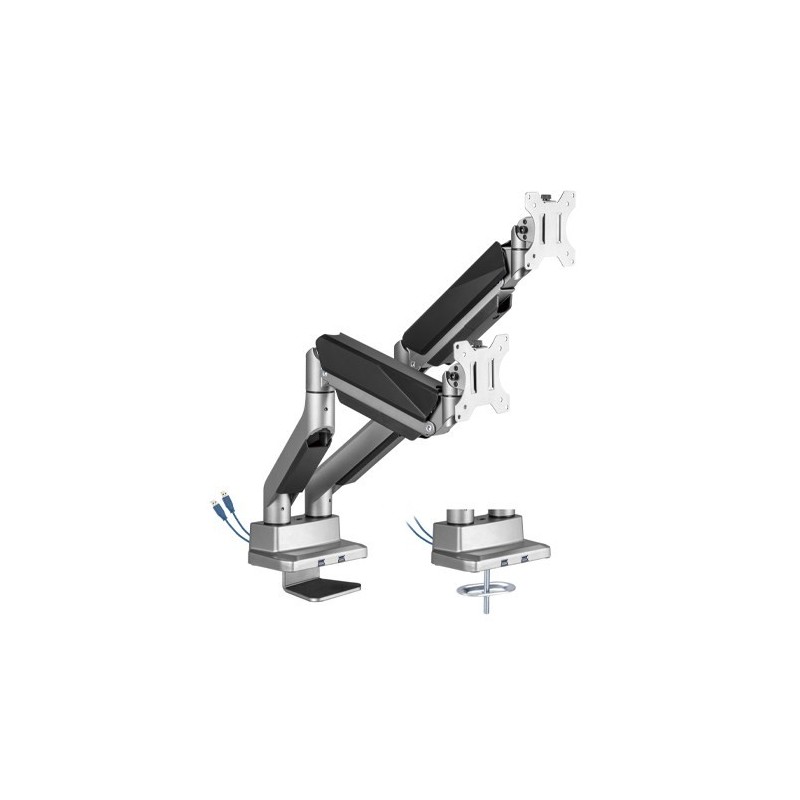 Brateck Dual Monitor Economy Heavy-Duty Gas Spring Monitor Arm with USD 3.0 Ports Fit Most 17'-35' Up to 15kg