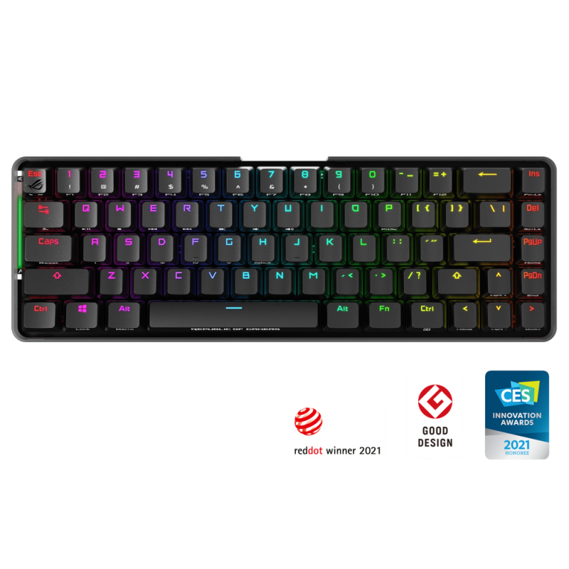 ROG Falchion NX 65% wireless mechanical gaming keyboard with 68 keys, wireless Aura Sync lighting, interactive touch panel, keyboard cover case, ROG NX switches, and up to 450-hour battery life