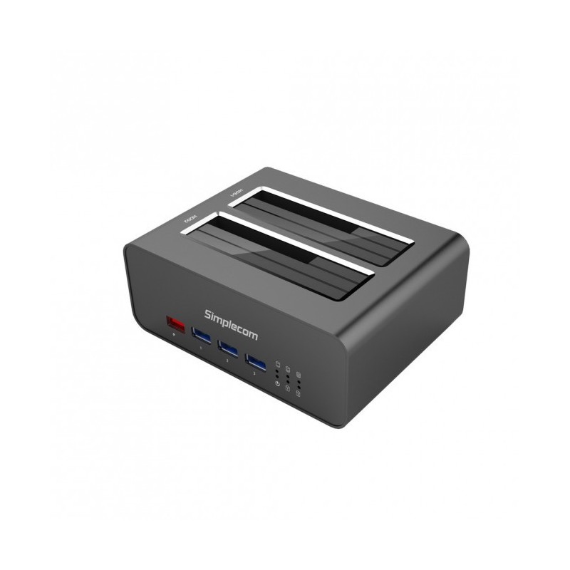 Simplecom SD352 USB 3.0 to Dual SATA Aluminium Docking Station with 3-Port Hub and 1 Port 2.1A USB Charger
