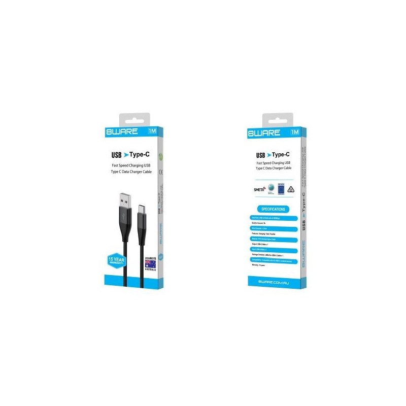 8Ware Premium 1m Samsung Certified Fast Speed Charging USB Type C Data Charger Cable For Samsung Huawei Google LG Retail