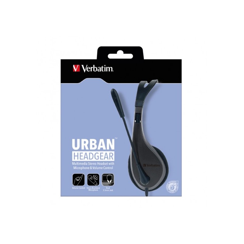 Verbatim Multimedia Headset with Microphone - 3.5mm Jack, Wide Frequency Stereo, 40mm Drivers, Comfortable Ergonomic Fit, Adj