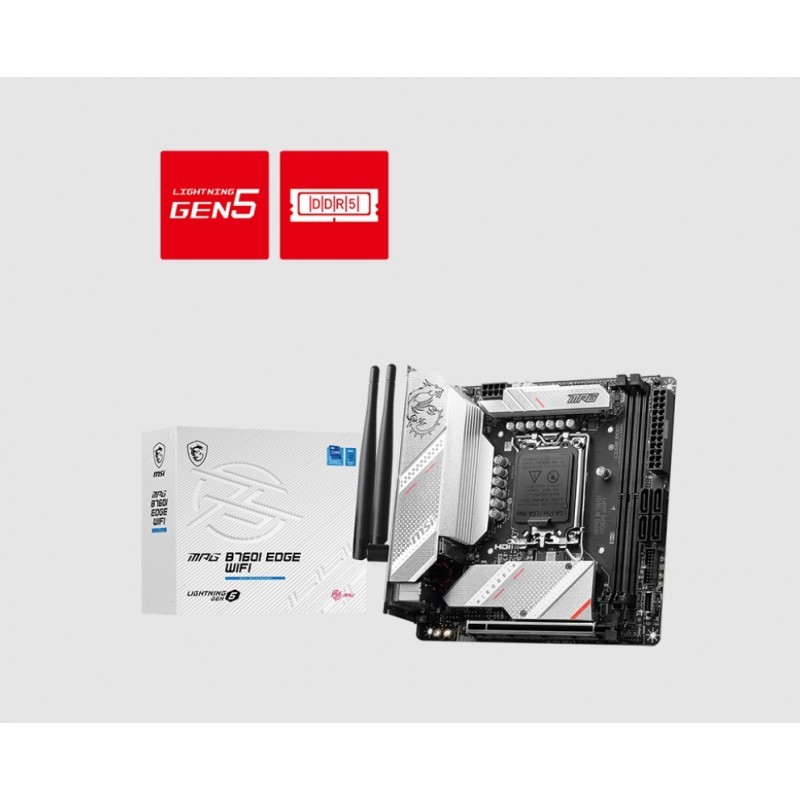 MSI MPG B760I EDGE WIFI Motherboard, 2x DDR5~128GB, 1x PCI-E x16, 2x M.2, 4x SATA, 4x USB 2.0, 2x USB C