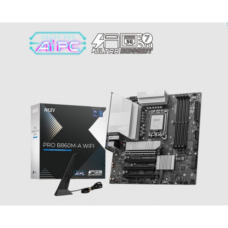 MSI PRO B860M-A WIFI, INTEL B860, 4x DDR5 256GB, 1x HDMI, 4x PCI-E x16 slot, 3x M.2, 4x SATA, 6x USB 2.0, Intel® Wi-Fi 7