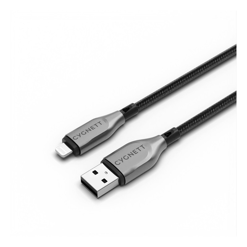 Cygnett Armoured Braided Lightning to USB-A (2.0) (2M) Cable - Black (CY4660PCCAL), 2.5A/12W, 480Mbps, Turbo Charge, Apple iP