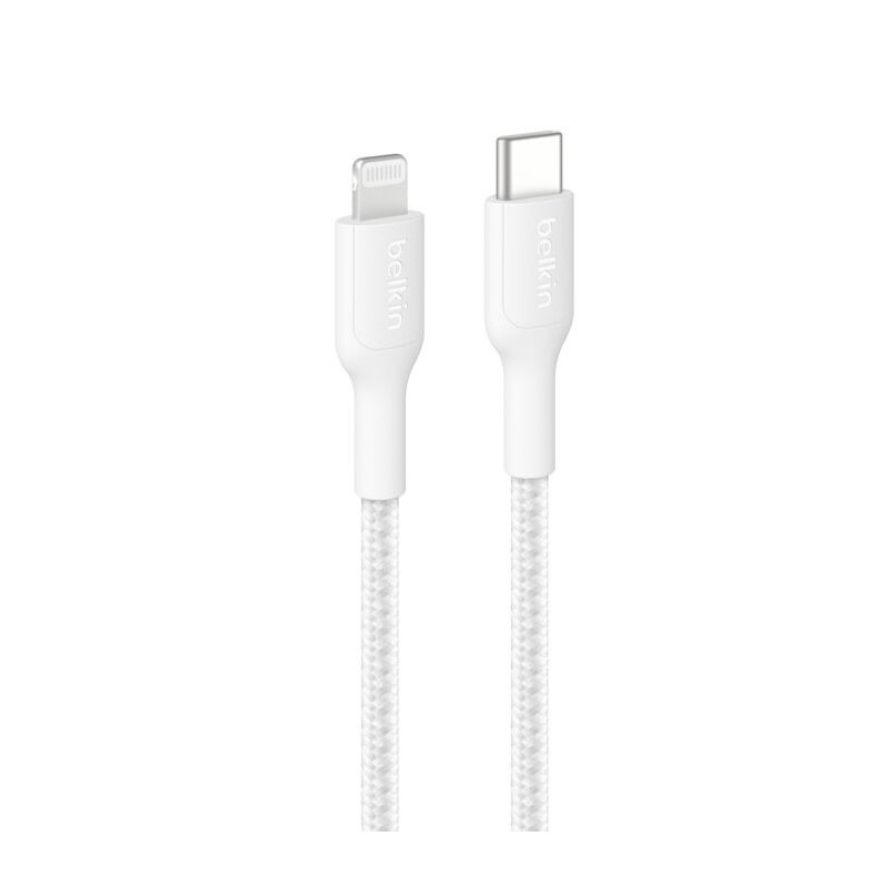 Belkin BoostCharge Pro Braided Lightning to USB-C Cable (2M) - White (CAA022fq2MWH), 3A/15W, 480Mbps,350K Bends,Apple, MFI-C
