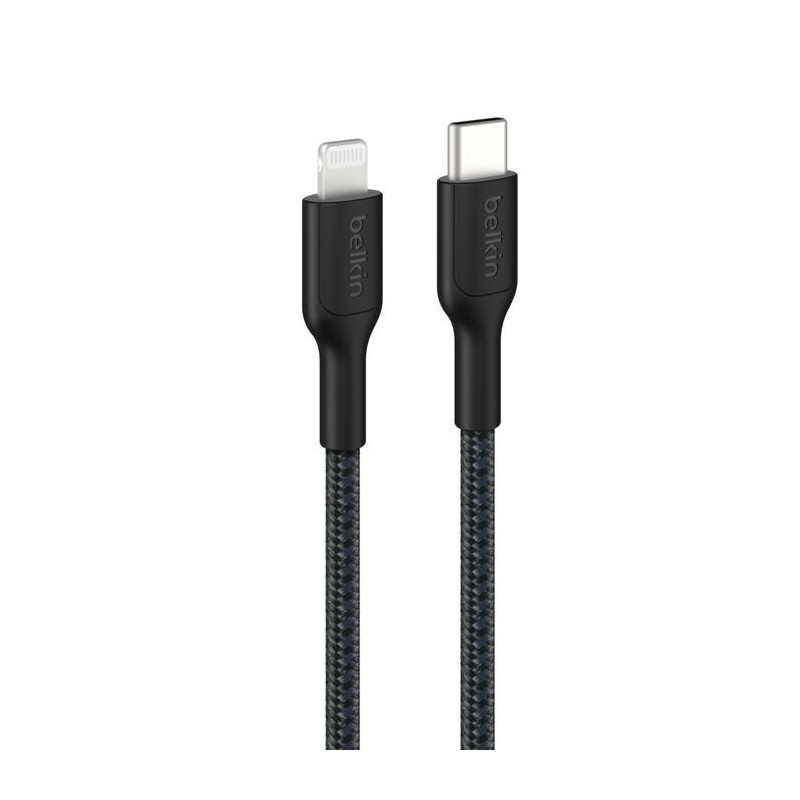 Belkin Boostcharge Pro Braided Lightning to USB-C Cable (2M) - Black (CAA022FQ2MBK),3A/15W, 480Mbps,350K Bends,Apple, MFI-Ce