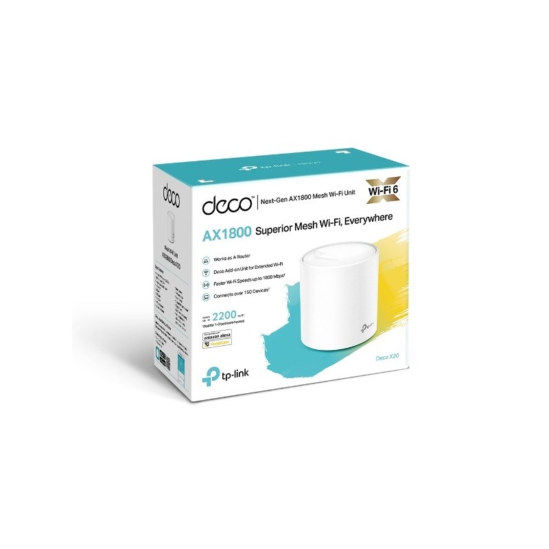 TP-Link Deco X20 (1-pack)AX1800 Whole Home Mesh Wi-Fi 6 System, Up To 200 sqm Coverage, WIFI6, 1201Mbps @ 5Ghz, 574Mbps @ 2.4