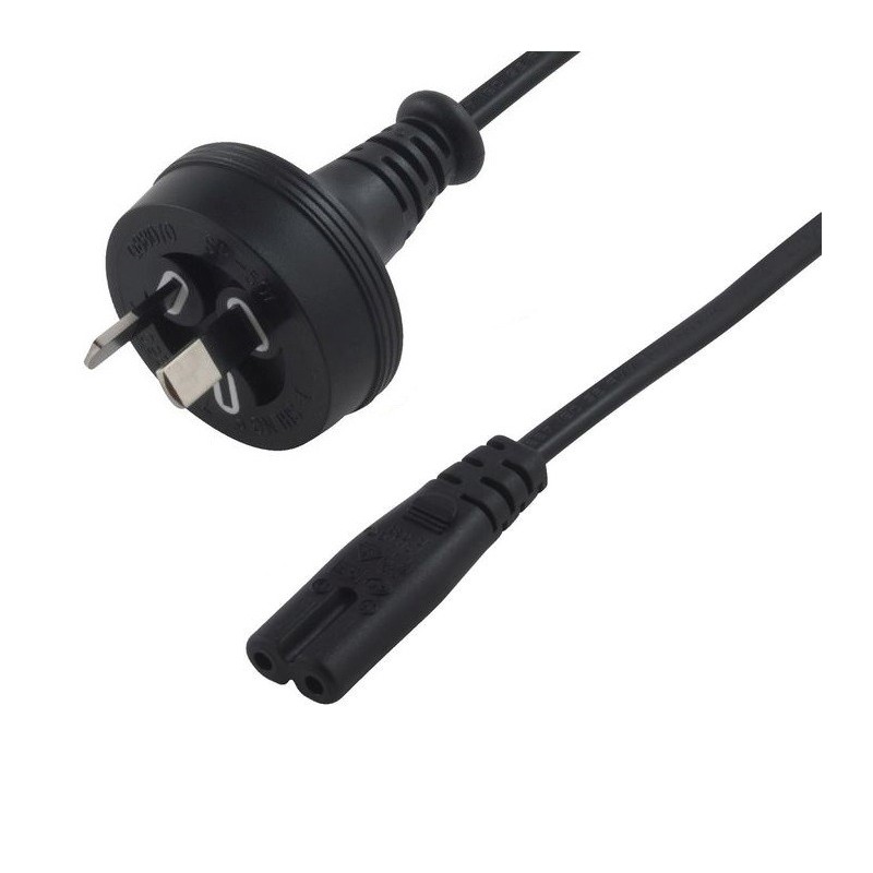 Power Cable: AU Mains to IEC C7 (240V) - 1.8m Connect any device fitted with an IEC C7 power socket to a standard Australian 2-pin mains power outlet. Connector 1: 2-Pin AU Mains Plug Male Connector 2: IEC C7 Female Cable Length: 1.8m Cable Colour: Black Packaging: No packaging
