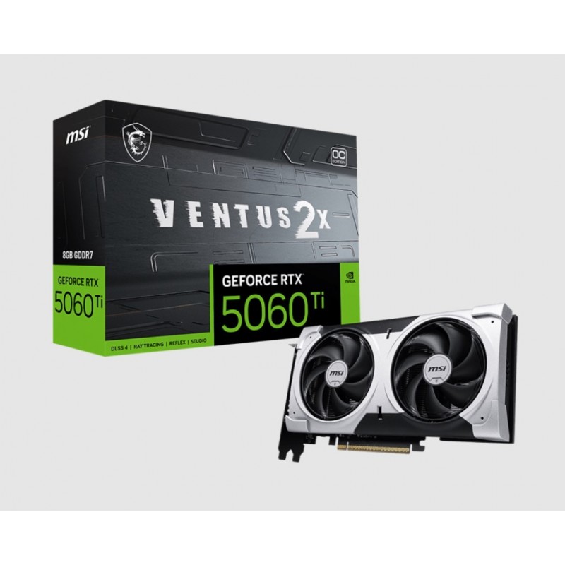 MSI nVidia GeForce RTX™ 5060 Ti 8G VENTUS 2X OC PLUS, PCI Express® Gen 5 x16, Boost: 2602 MHz, CUDA 4608 Units, 8GB GDDR7, HDMI™ x 1
