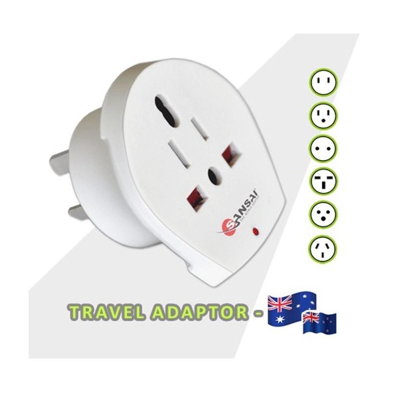 Sansai Travel Adaptor STV-018 for 240V equipment from Britain USA Europe Japan China Singapore Korea & Italy to use in Australia & NZ Hot Sealed Packl