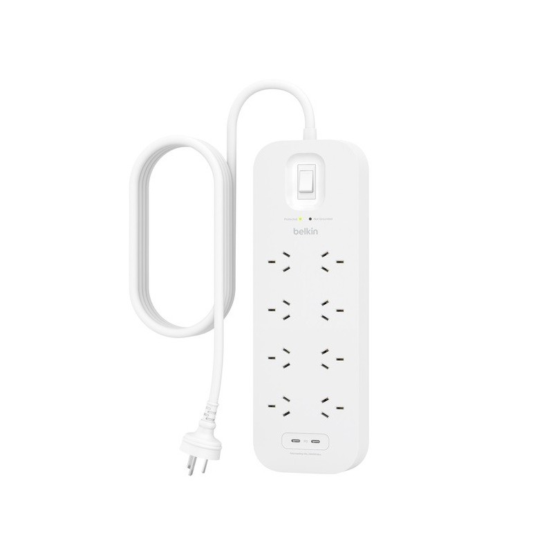 Belkin Connect 8-Outlet Surge Protector with Dual USB-C 30W Ports - White (SRB004AU2M)