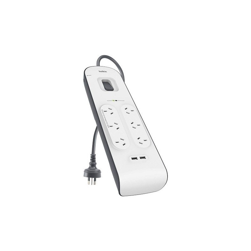 Belkin SurgePlus 6-Outlet 2-Meter Surge Protection Strip With Two (2.4) Amp USB Charging Ports - White (BSV604au2M), 2M Power