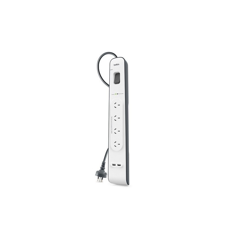 Belkin SurgePlus 4-Outlet 2-Meter Surge Protection Strip With Two (2.4) Amp USB Charging Ports - White (BSV401au2M)