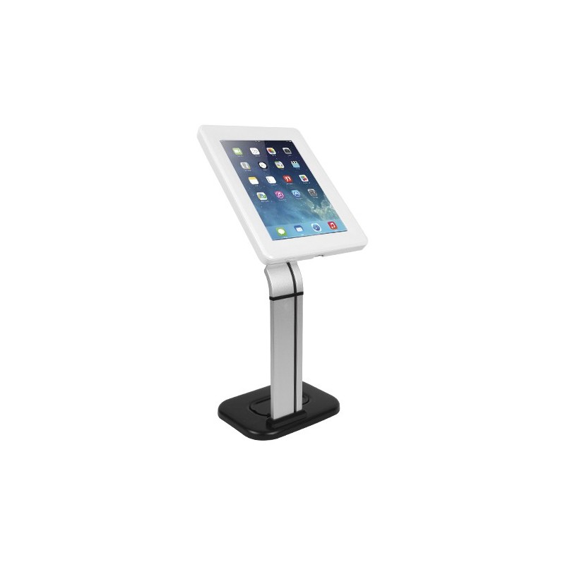 The Brateck PAD15-03, anti-theft tablet desk stand with lock, is designed for securely displaying in the public. Width adjustable panel make it able to install iPad 1/2/3/4/Air, most 9.7'-10.1' Galaxy and other tablets. The case is designed with home bottom covering, which can prevent public touch of Home Button. Invisible cable management inside the tube can make the wire organized better.