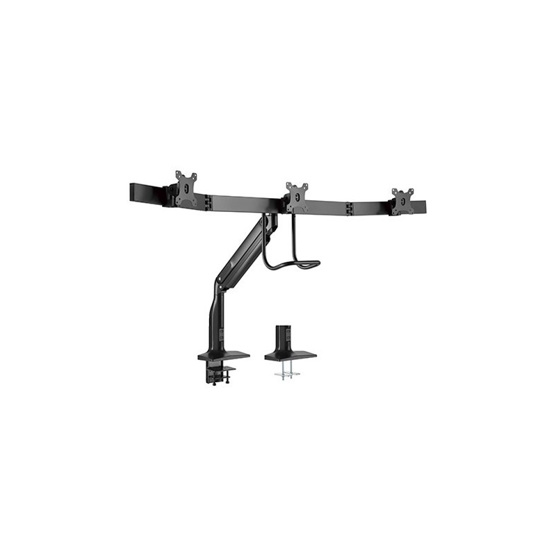 Triple VESA plates make the LDT43-C031 the ideal solution for multi-monitor users. Capable of firmly holding up to three monitors from 17' to 32' and up to 6.5kg/14lbs (per screen). Easily raise or lower all monitors simultaneously via a conveniently located center handle. The arm also provides a wide range of movement including tilt, swiveling and rotating, letting the user achieve a perfect posture while at work. Detachable VESA plates provide quick installation or removal of the monitor. Built-in cable management helps to keep everything neat and organized.