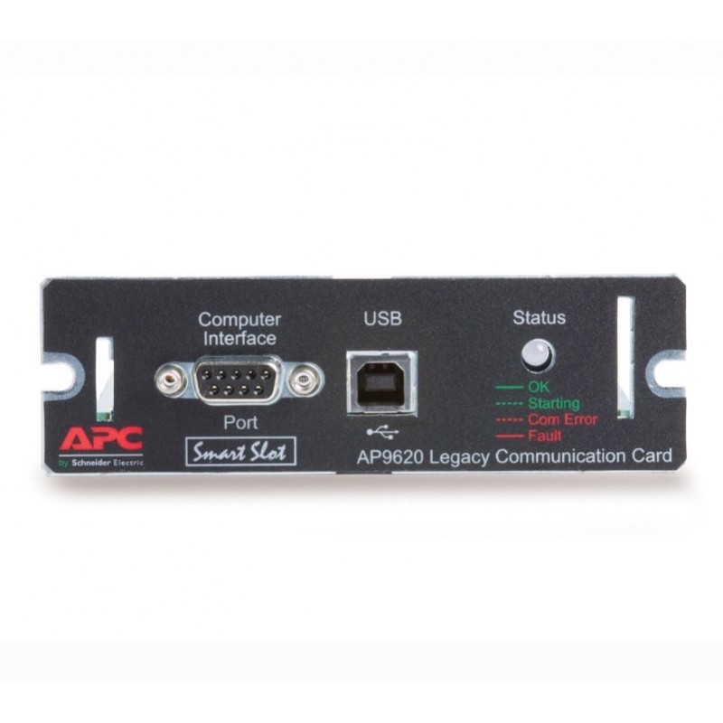 The Legacy Communications SmartSlot Card provides serial communications support for the UPS-Link protocol for SC, SMC, SMX, SMT, SURTD, SRT UPS models. These UPS devices no longer communicate using the UPS-Link protocol. The Legacy Communications Card can be used for custom applications using the UPS-Link protocol.