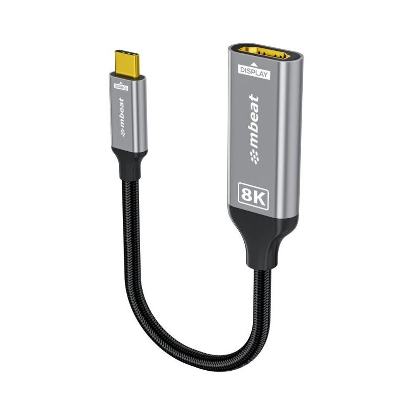 The mbeat Tough Link 8K USB-C to HDMI Adapter supports 8K@60Hz, multi-screen functionality, and smooth video with HDMI 2.1. It features a durable nylon cable, gold-plated connectors, and broad compatibility with USB-C and Thunderbolt devices.