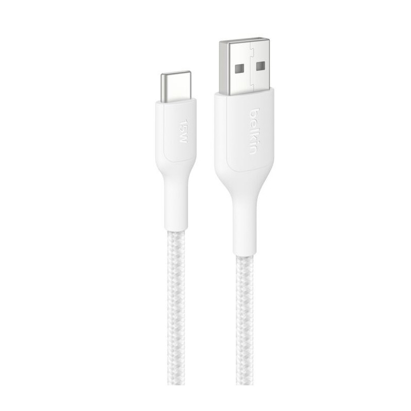 BoostCharge Pro Braided USB-A to USB-C Cable 15W, 3.3ft/1m, White