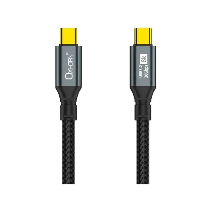 Oxhorn USB 3.2 Gen 2×2 2m USB-C to USB-C 20Gbps 8K@60Hz 20V 100W E-Marker Chip Black fast charging & Video cable Laptop Phones Tablet USB-C Device