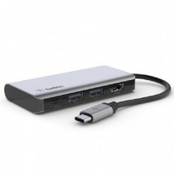 Belkin Connect USB-C 4-in-1 Multiport Adapter + USB-C Cable (13CM) - Space Grey (AVC006btSGY)