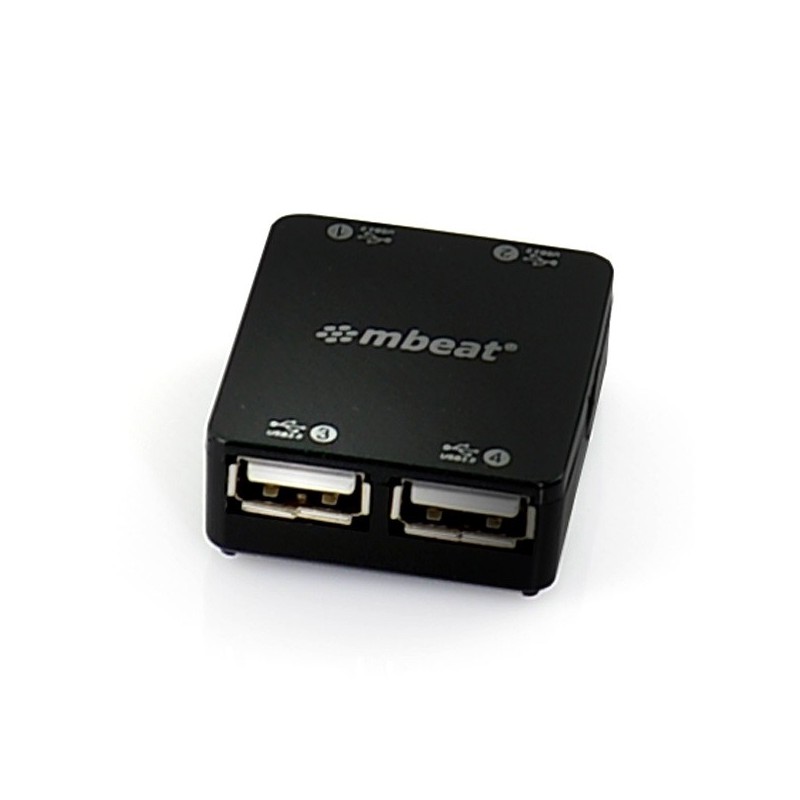 Mbeat® 4 port mini USB hub- Super mini with fold-away cable design is high quality finished. It offers 4-port USB 2.0 high-speed interfaces and ideal for laptop, ultrabook and Mac book users. - Ultra portable design - Built-in 4 USB 2.0 ports - 1 power LED indicator - 4 cm fold away USB cable design - Support optional 5V AC/DC power - Works with PC and Mac.