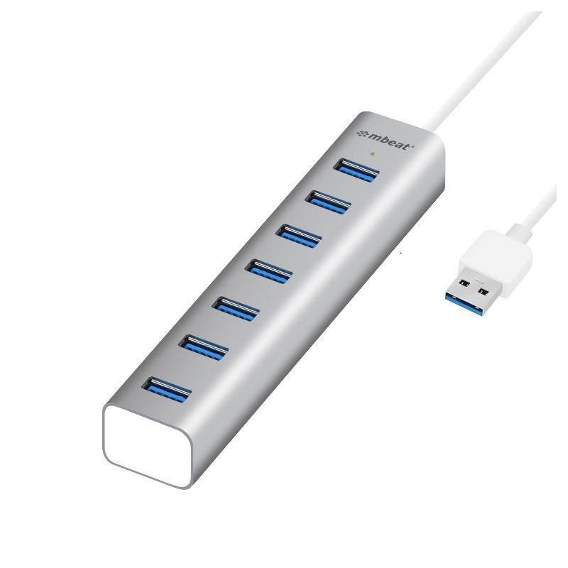 The mbeat® 7-Port USB 3.0 Aluminium Slim Hub gives you additional 7 USB 3.0 ports to a computer from a single USB 3.0 host connection. The hub is designed in aluminium housing, making it light and portable, at the same time, giving it a sleek and elegant look to suit with home and office use. The hub offers data transfer rates up to 5 Gbps and the USB hub meets SuperSpeed USB 3.0 specifications and is backward compatible with USB 2.0 and 1.1 devices. The hub also provides easy port access when connecting or disconnecting devices, it is featured in one-sided port orientation, with current overload detection and protection across all 7 ports.The hub supports Plug and Play technologies, letting you switch and operate your connected devices without having any needs for additional drivers. The USB hub is bus powered for use in environments where a power outlet may be unavailable, but is perfect for high-power USB devices when used with the included optional power adapter.