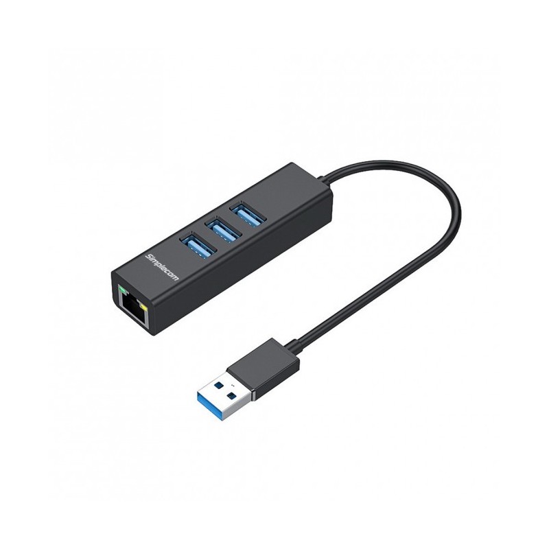 Simplecom CHN420 Black Aluminium 3 Port SuperSpeed USB HUB with Gigabit Ethernet Adapter