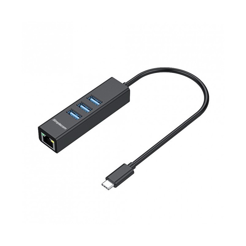 Simplecom CHN421 Black Aluminium USB-C to 3 Port USB HUB with Gigabit Ethernet Adapter