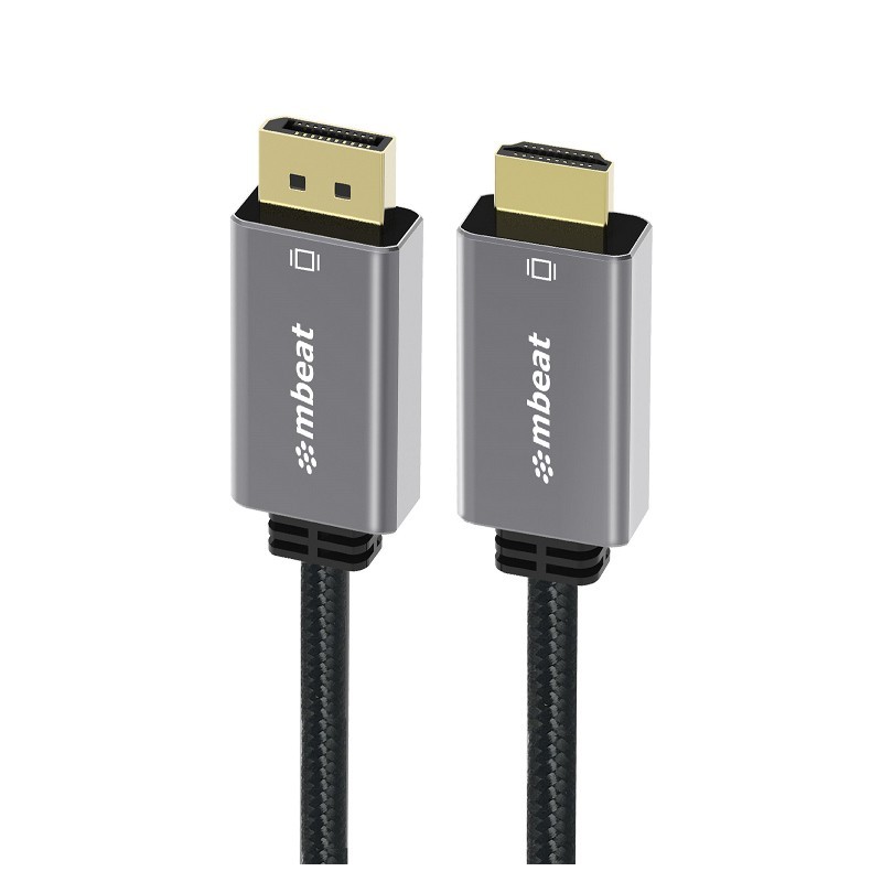 mbeat Tough Link 1.8m 4K/60Hz Display Port to HDMI Cable - Connects DisplayPort to HDMI 4K@60Hz (3840×2160), Gold Plated, Aluminium, Nylon Braided