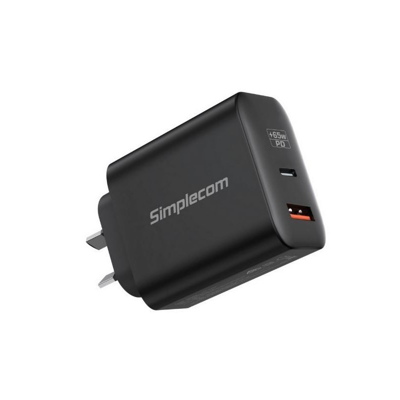 Simplecom CU265 Dual Port PD 65W GaN Fast Wall Charger USB-C + USB-A for Phone Laptop