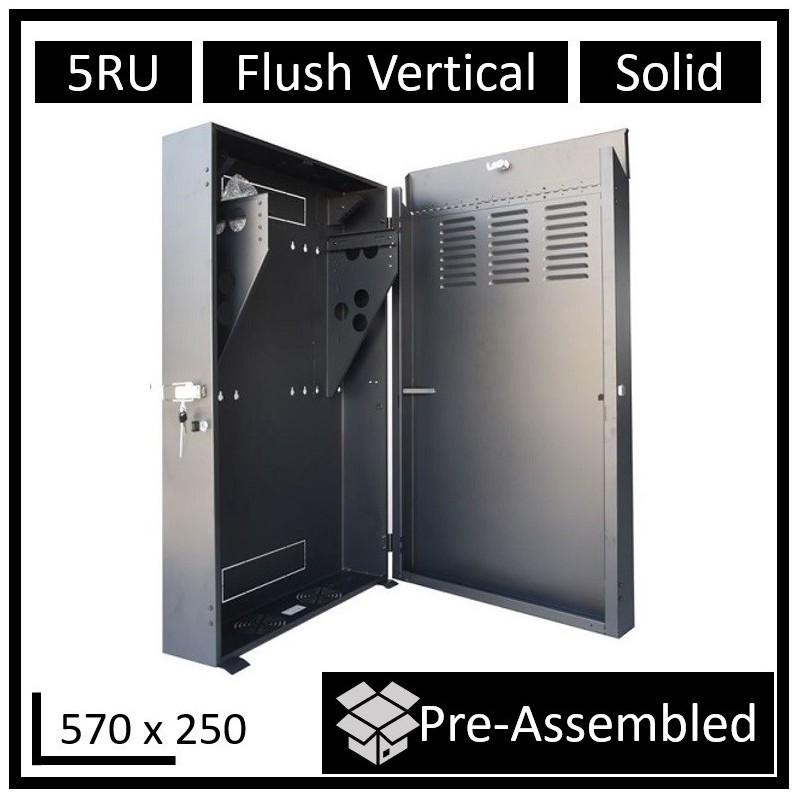 LDR Assembled 5U Flush Wall Mount Vertical Cabinet (570mm x 250mm) - Black Metal Construction