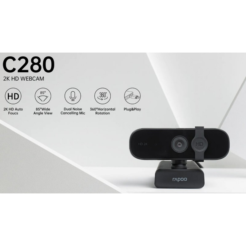 Experience a new level of video conferencing with the Rapoo C280 2K Webcam. A Pristine 2K 2560 x 1440 pixels HD video, unmatched sensitivity, and privacy assurance ideal for your workplace. A built-in privacy cover takes care of your privacy during off times. A wide-angle 85° lens, 360-degree omnidirectional microphone, and plug-&-play connectivity makes the C280 an excellent choice for connecting and collaborating for everyone.