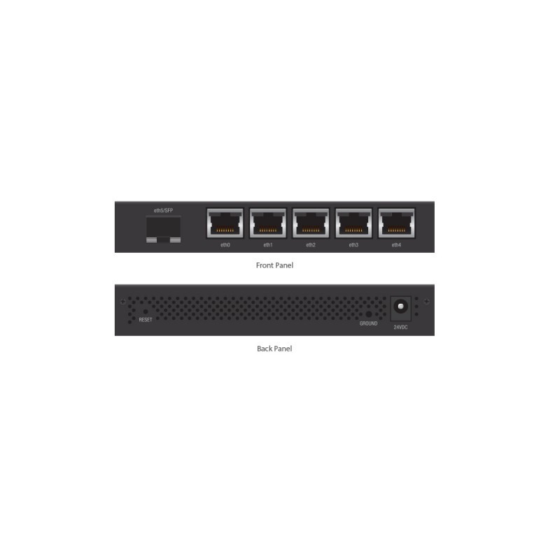 Compact but powerful router sporting (5) Gigabit RJ45 ports with passive PoE support and an SFP port.
