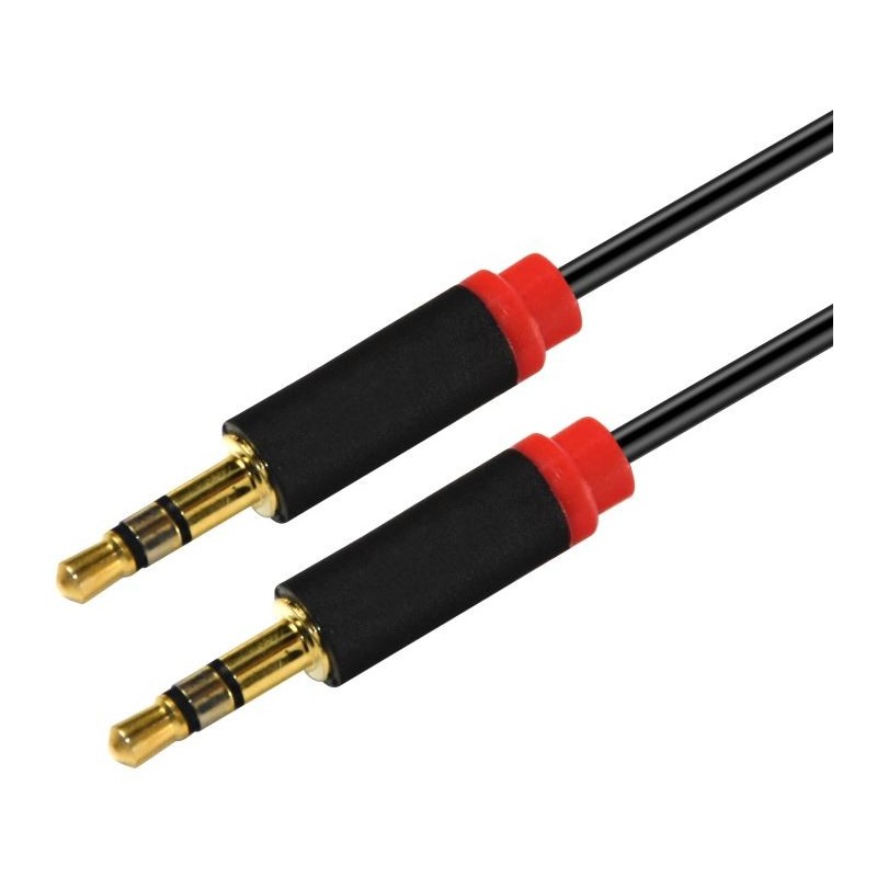 Astrotek 1m Stereo 3.5mm Flat Cable Male to Male Black with Red Mold - Audio Input Extension Auxiliary Car Cord
